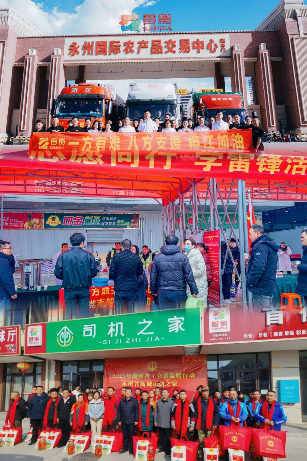 永州首衡城的民生答卷,不僅寫(xiě)在豐富的貨架上,更藏在溫暖的行動(dòng)里。兩年來(lái),它始終以公益踐行責(zé)任,讓“首衡溫度”浸潤(rùn)湘南大地。“學(xué)雷鋒?做好事”活動(dòng)現(xiàn)場(chǎng),高速通行咨詢、貨運(yùn)路線規(guī)劃、線上ETC辦理指導(dǎo)等服務(wù),切實(shí)解決了商戶經(jīng)營(yíng)難題;“秋冬送溫暖”活動(dòng)中,熱飲、御寒圍巾、專(zhuān)屬休息區(qū),為奔波的冷鏈司機(jī)和貨運(yùn)師傅驅(qū)散了寒意;緊急馳援貴州榕江災(zāi)區(qū)時(shí),48小時(shí)內(nèi)籌集36噸生活物資,用高效響應(yīng)詮釋了“一方有難,八方支援”的擔(dān)當(dāng)。