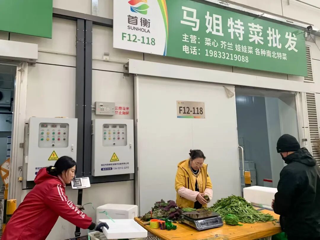 2015年,首衡市場開業的消息傳來,其交通便利、場地寬敞、運營成本更低的顯著優勢,讓馬艷夫妻果斷決定搬遷至高碑店。初到首衡時,僅擁有一個檔口,菜品補給仍依賴北京、南京等產地。但長途運輸帶來的價格競爭力不足問題逐漸凸顯,尤其在特殊時期,物流不暢導致的補貨難題,更讓他們堅定了“本地種植”的決心。